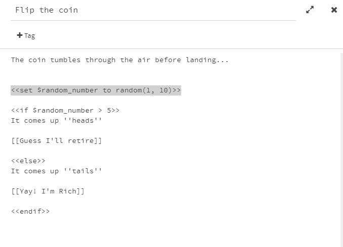 - Download this sample coinflip game. Import it into Twine.